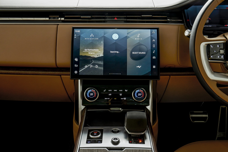 เรนจ์โรเวอร์รุ่นใหม่ยกระดับเทคโนโลยีอินโฟเทนเมนต์ Pivi Pro ที่ได้รับรางวัลของแลนด์โรเวอร์ ด้วยหน้าจอสัมผัสที่ใหญ่ที่สุดเท่าที่เคยมีมา หน้าจอแบบลอยขนาด 13.1 นิ้ว ที่โค้งมนสะท้อนถึงความประณีตทางสถาปัตยกรรมของการตกแต่งภายในด้วยการออกแบบแบบมินิมอล ให้การควบคุมฟังก์ชันหลักทั้งหมดในยานยนต์ที่ใช้งานง่าย โดยใช้เทคโนโลยีล่าสุดเพื่อมอบอินเทอร์เฟซที่ออกแบบมาคล้ายคลึงสมาร์ทโฟน พร้อมด้วยฮาร์ดสวิตช์ที่สะดวกสบายสำหรับการควบคุมอุณหภูมิ